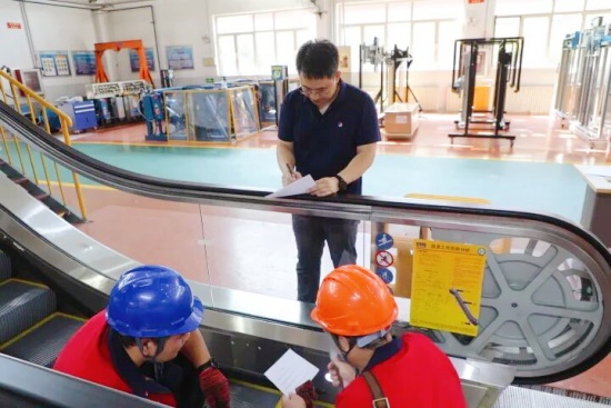 決賽現場,來自全市電梯行業維保單位的32支代表隊64位參賽選手同臺競技,最終將決出2支隊伍參加全國“安康杯”比賽。比賽嚴格遵循天津市“安康杯”賽事的各項要求,由維保理論知識考試和實踐技能比賽兩部分組成,維保理論考試成績占總成績的30%,實踐技能比賽成績占總成績的70%。理論考試聚焦《電梯維護保養規則》(TSG T5002—2017)等法規標準,實操項目涵蓋電梯安全回路和制動器檢查、電梯門系統檢查、扶梯安全檢查、限速器測試等核心技能。決賽現場,裁判組依據操作規范性、故障排除效率、安全防護意識等維度進行評分。