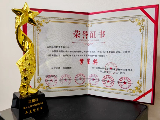 近日,第十三屆中國租賃論壇在天津市于家堡洲際酒店舉辦。百利裝備集團所屬百利融資租賃有限公司(以下簡稱“百利租賃”)被評為“第十三屆中國租賃年會年度繁星獎”,這是百利租賃自第十一屆租賃年會獲得“創(chuàng)新獎”,第十二屆租賃年會獲得“啟明星獎”以來,連續(xù)三年榮獲租賃年會年度獎項。